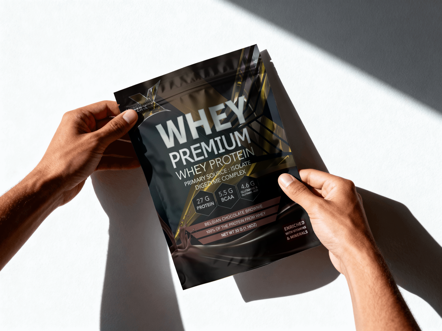 Counterfeit protein powders (often just corn flour) are a serious issue in developing markets. To combat this, we collaborated with our graphic design team to implement four layered authenticity features: